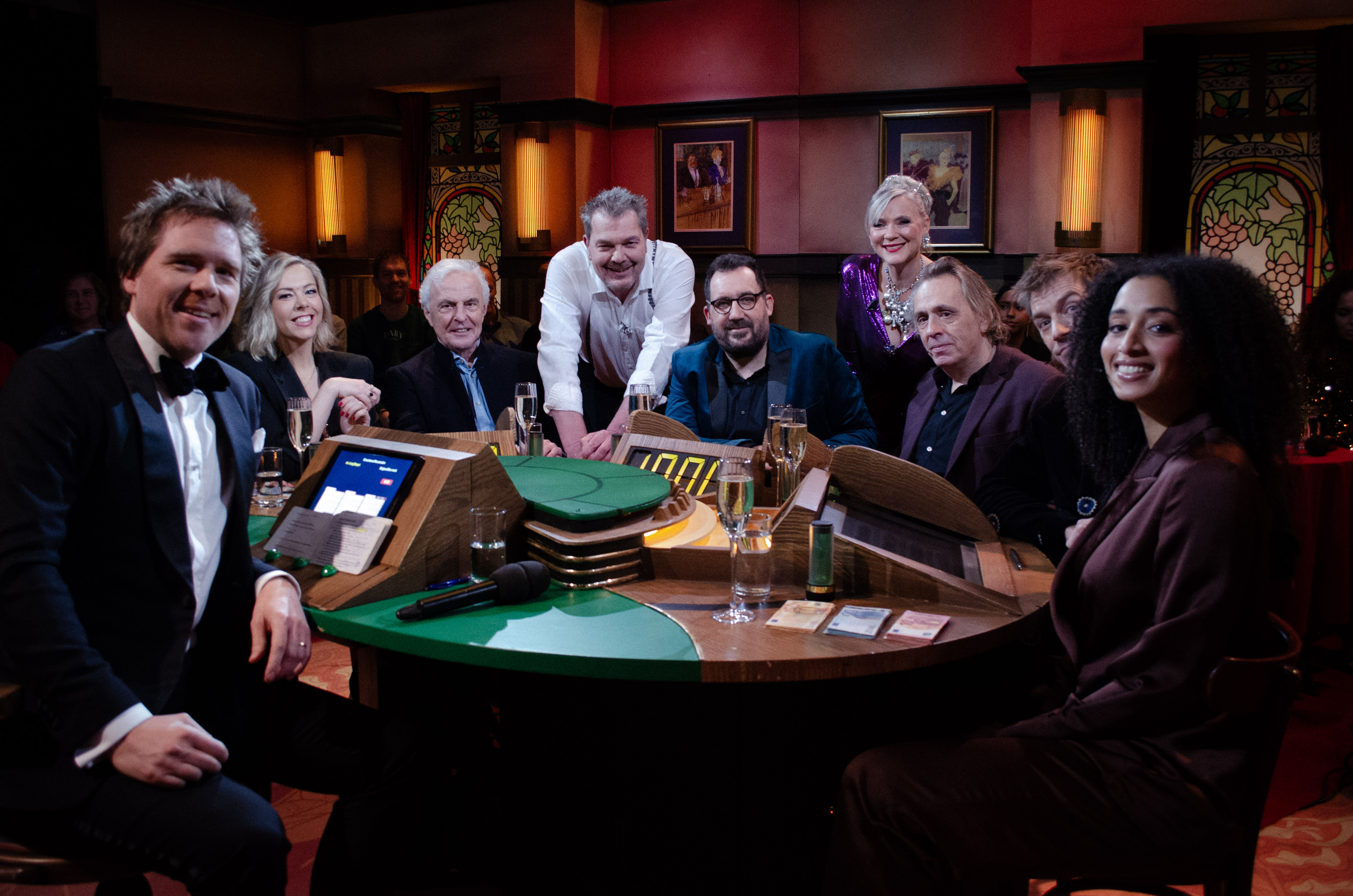 Het café opent haar deuren voor drie bekende duo’s: Marcel van Roosmalen & Gijs Groenteman, Huub Stapel & Nynke de Jong en Winfried Baijens & Evita Mac-nack. Drie teams die - op papier - zeer aan elkaar gewaagd zijn. Onder leiding van quizmaster Sjoerd van Ramshorst worden de klassieke categorieën gespeeld, maar met een verrassende oud en nieuw-insteek. Welk duo speelt het meeste geld bij elkaar voor het goede doel en sluit het jaar af als winnaar? De uitzending wordt op een bijzondere manier muzikaal omlijst door Klaas van Dijk en Mylou Frencken die, samen met een aantal gastmuzikanten, het geheel extra feestelijk maken.